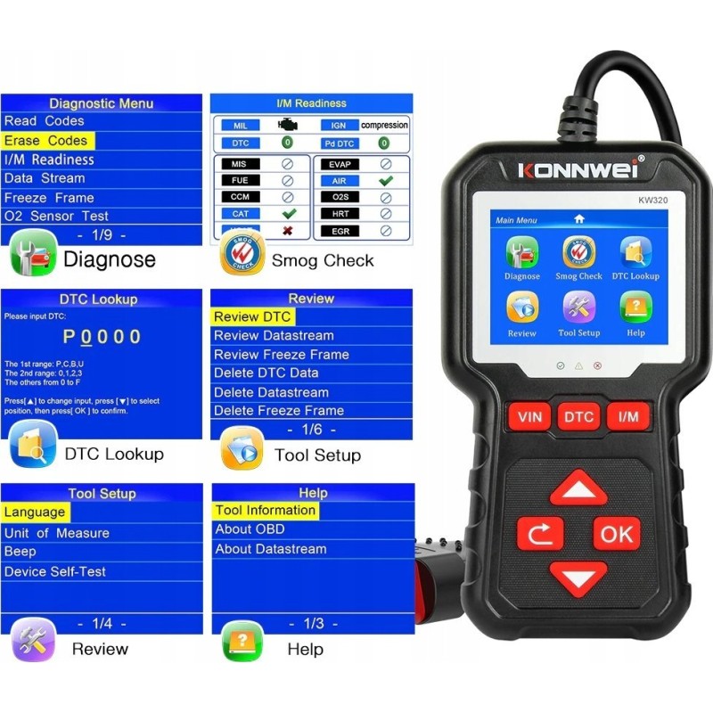 Konnwei Miernik diagnostyczny, skaner OBD2 Konnwei KW320