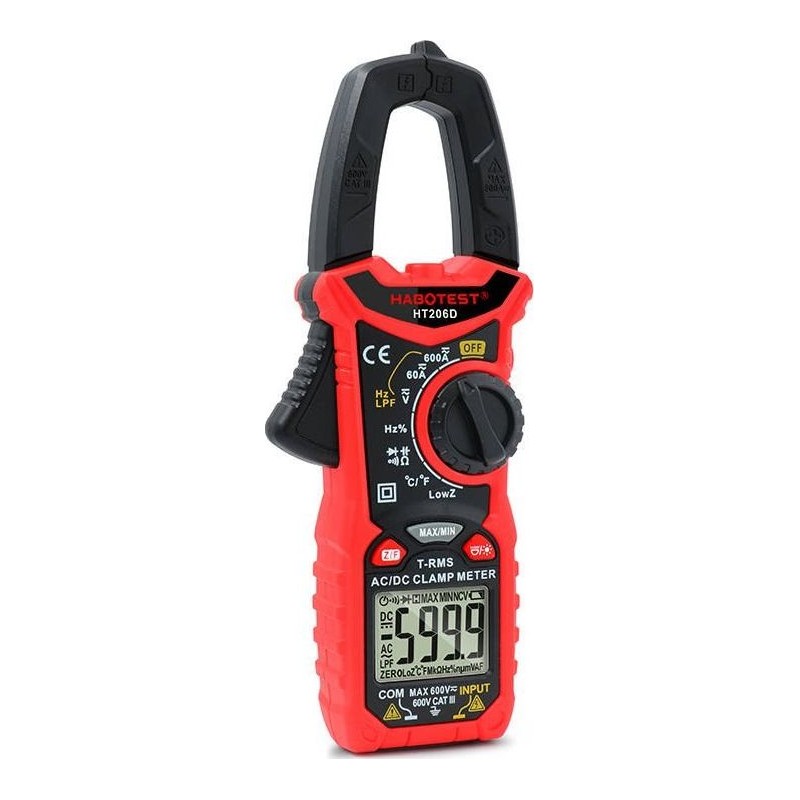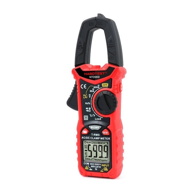 Funkcjonalny miernik cęgowy marki Habotest gwarantuje precyzyjny pomiar, którego wyniki są wyświetlane na czytelnym, podświetlanym ekranie LCD. Rozmiar szczęk wynosi do 26 mm, co pozwala na wygodną obsługę urządzenia. HT206D został też wyposażony w latarkę, która ułatwia pracę w ciemnych pomieszczeniach.