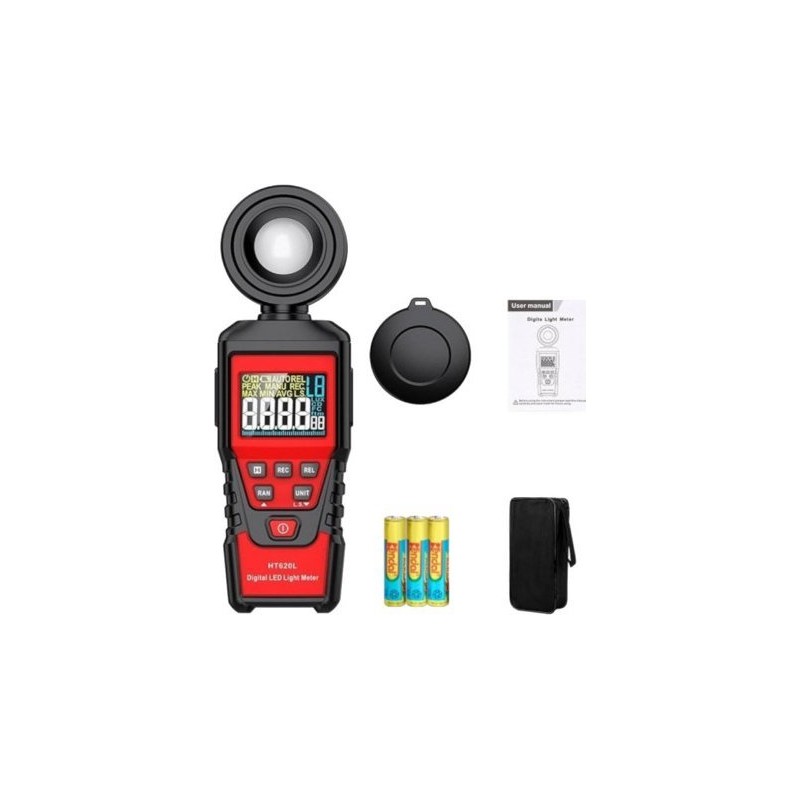 - Zakres pomiarowy: 0-200000Lx (0-20000FC)