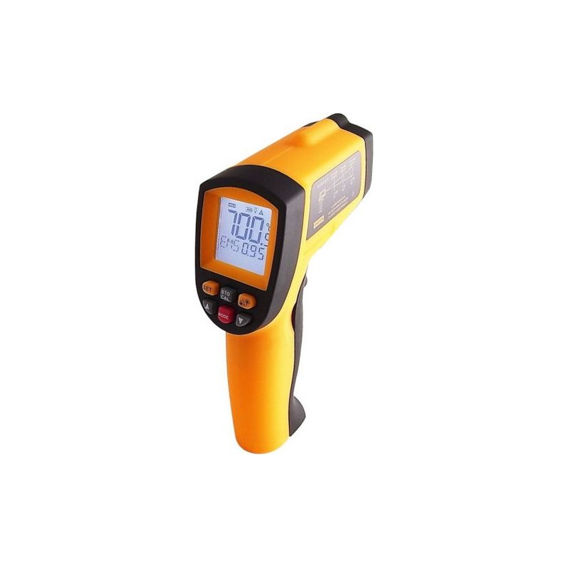 Wysokiej jakości termometr bezkontaktowy marki Benetech o zakresie temperatur od -50 do +700 °C. Urządzenie wyposażone jest w celownik laserowy, który umożliwia precyzyjne nacelowanie badanego punktu. W urządzeniu zastosowano dobrej jakości materiały, a ergonomiczna budowa poprawia wygodę użytkowania termometru. Podświetlany wyświetlacz umożliwia pracę z urządzeniem w ciemności. Pirometr wyposażony jest w funkcję automatycznego wyłączenia zwiększając oszczędność w zużyciu baterii.
