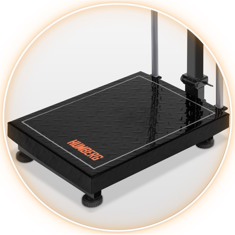 - Wysokiej jakości stalowa platforma pozwala na pewne ważenie ciężkich ładunków do 300 kg, bez ryzyka uszkodzeń czy odkształceń.