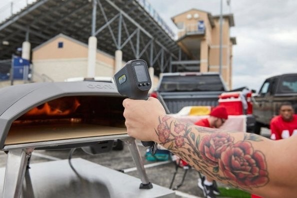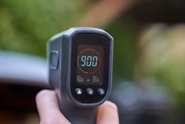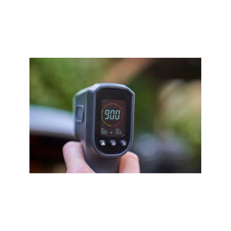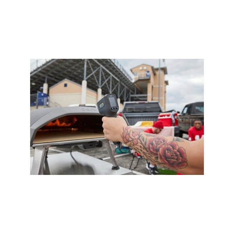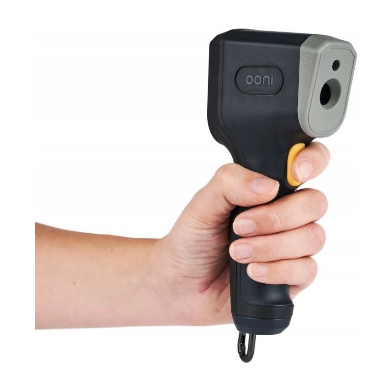 - Aby uzyskać dokładny odczyt, wystarczy skierować laserowy wskaźnik na środek kamienia pizzy, a wynik pojawi się na ekranie wyświetlacza.
