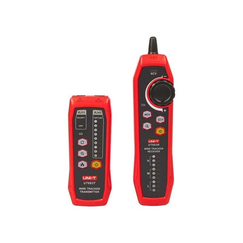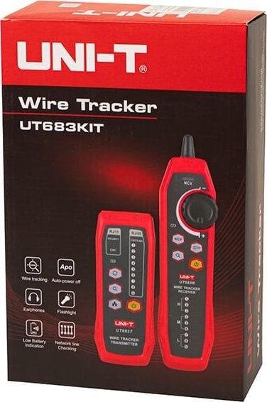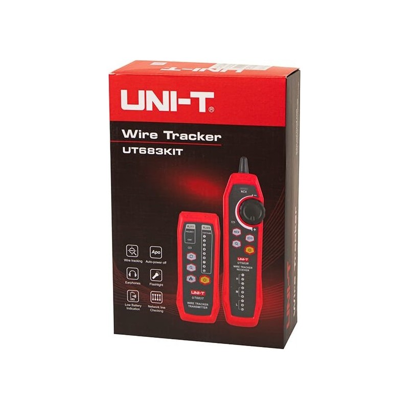UT683KIT to inteligentny lokalizator przewodw, ktry składa się z nadajnika i odbiornika. Ten zestaw został zaprojektowany z silną zdolnością przeciwzakłceniową. Odbiornik może szybko i dokładnie zlokalizować docelowy kabel. Ten zestaw może automatycznie identyfikować przerwę, zwarcie, polaryzację i szybko odrżniać awarie kabla.