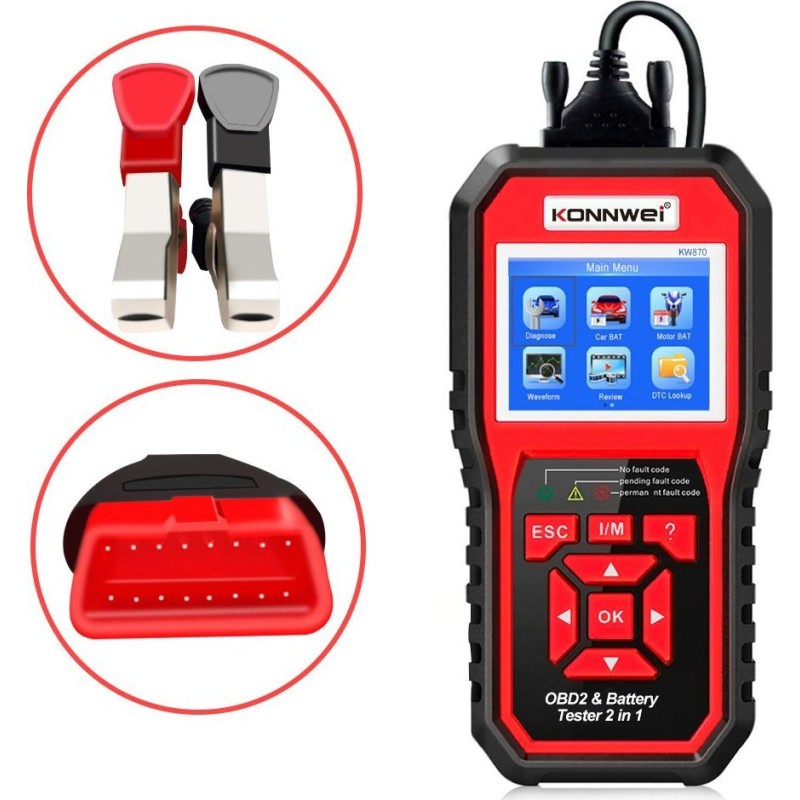 Miernik diagnostyczny KW870, skaner OBD2, tester baterii Konnwei