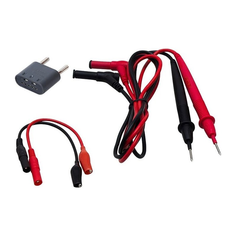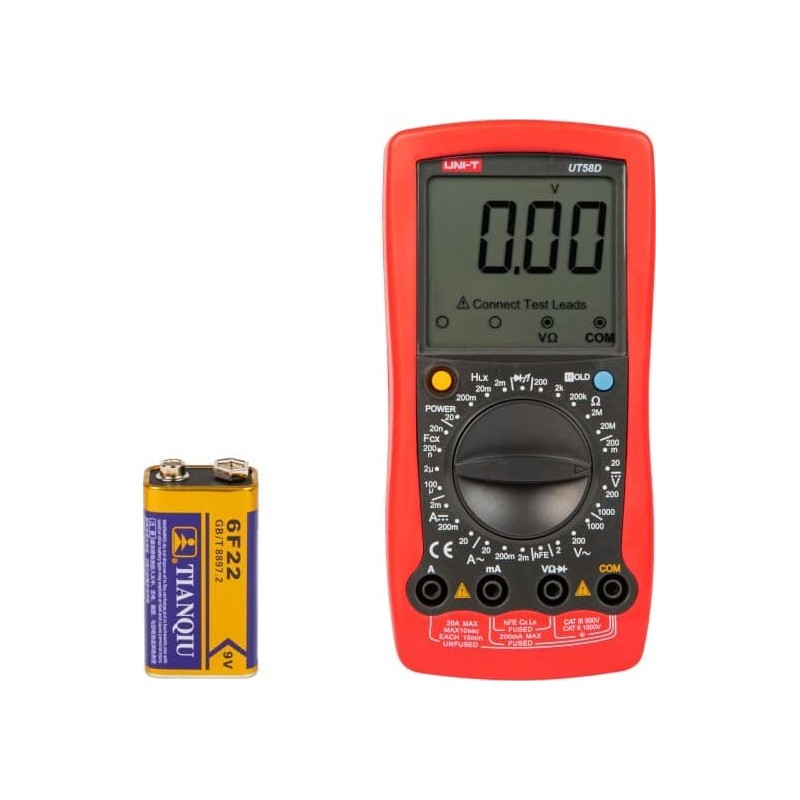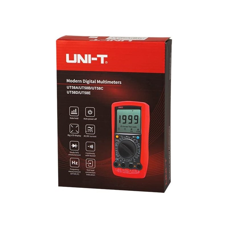 - Pomiar: test diod, akustyczny tester ciągłości obwodu, test tranzystorów, wyświetlanie kin, holster w zestawie