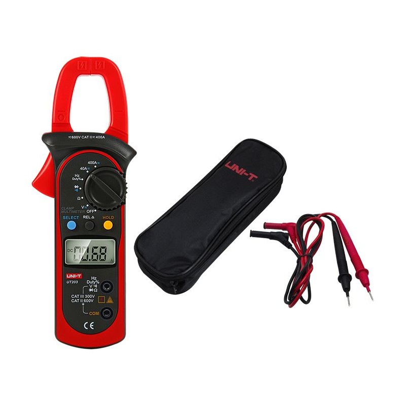 Unit Miernik cyfrowy cęgowy stały-zmienny UNi-T UT203 Kable pomiarowe Etui