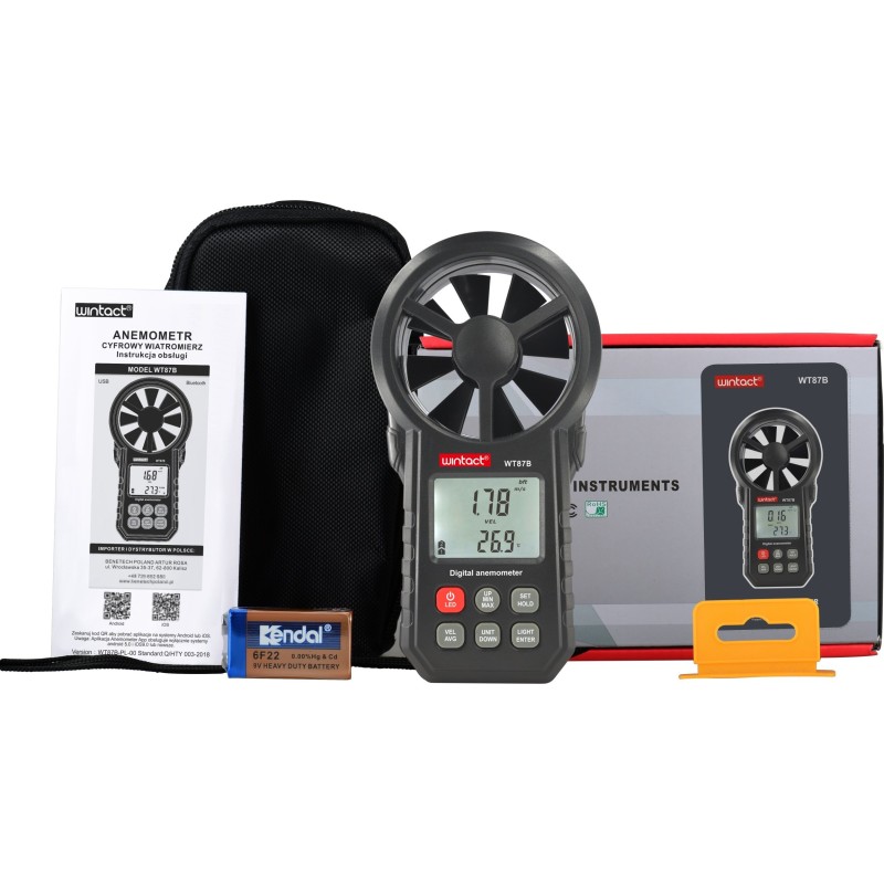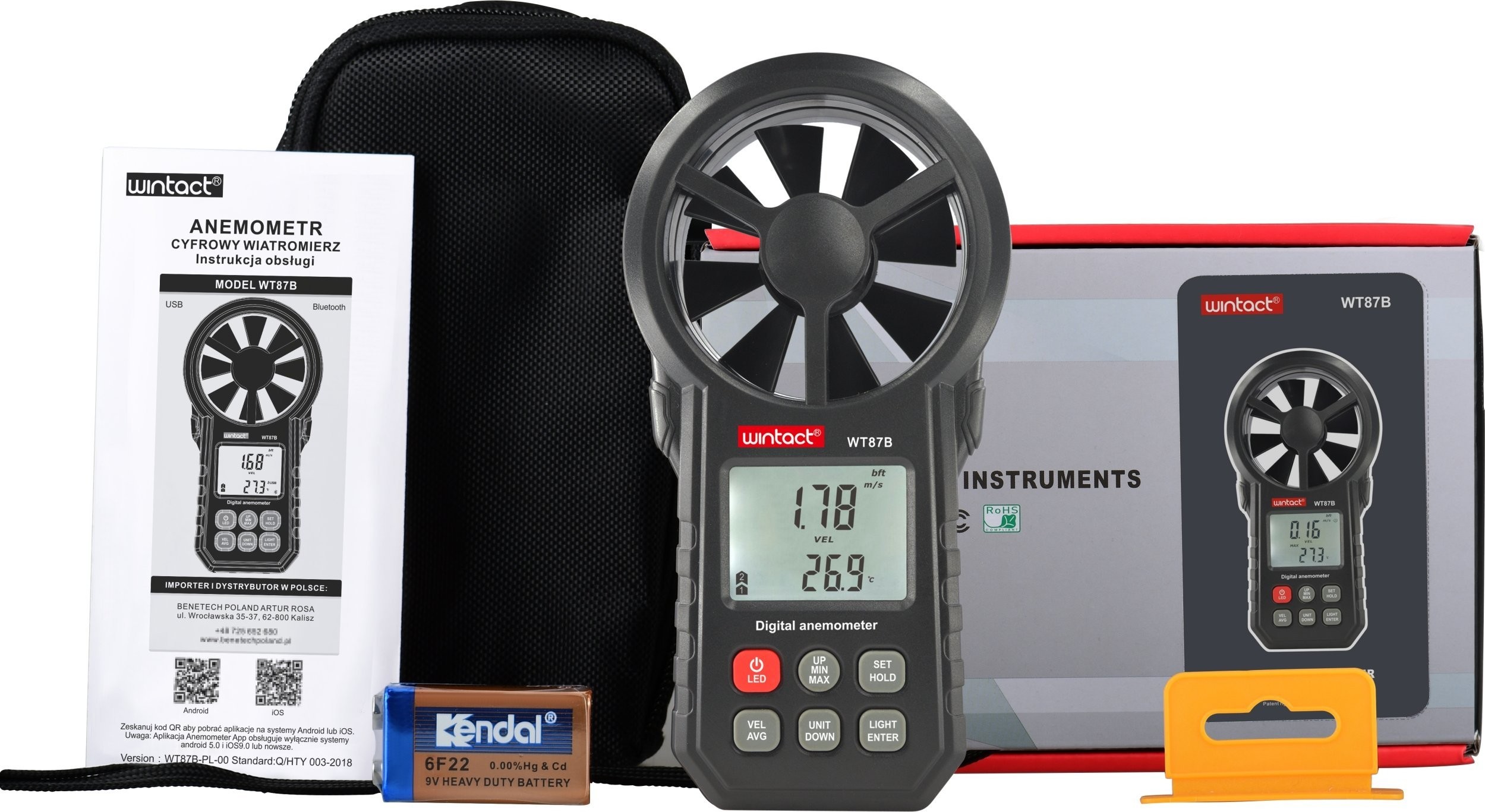 - Zestaw zawiera: anemometr, smycz, baterię VARTA 9V, instrukcję obsługi w języku polskim.