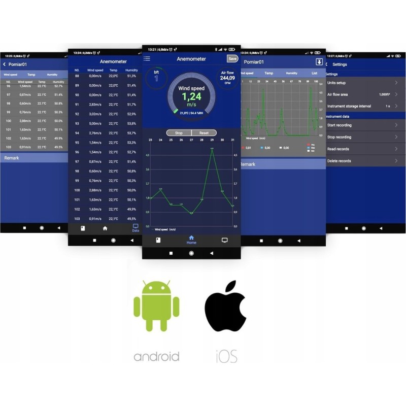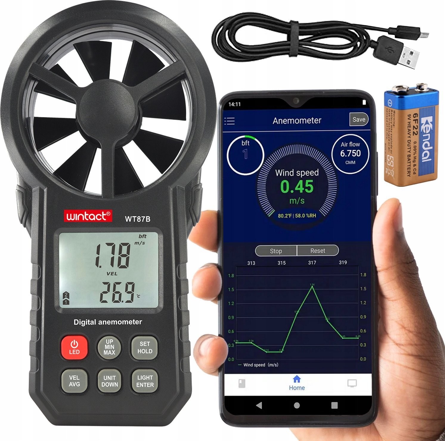 ANEMOMETR WIATROMIERZ MIERNIK WIATRU TEMP POMIAR PRĘDKOŚCI POWIETRZA BT APP