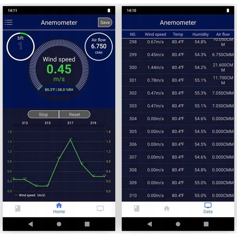 - Rozdzielczość prędkości wiatru: 0.1 m/s / 1,968 Ft/min / 0.019 węzłów / 0.036 km/h / 0.022 mph