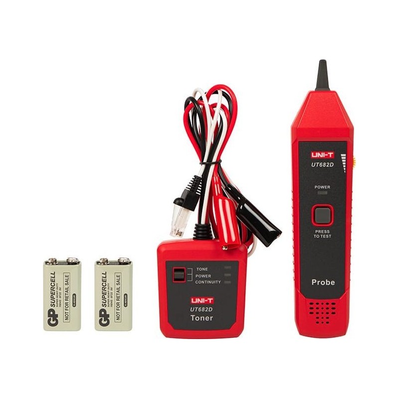 Tracker przewodw UT682 składa się z nadajnika i odbiornika, jest w stanie śledzić kable ethernetowe/telefoniczne/zasilające bez otwierania ich izolacji. UT682 może rozwiązywać problemy z kablami ethernetowymi i jest zalecanym narzędziem do debugowania kabli komunikacyjnych i kabli audio/wideo.