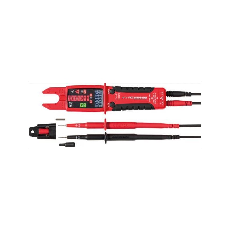 Miernik cęgowy cyfrowy CM 1-4CM 1-4, otwarty miernik cęgowy z dodatkowym ledowym wskaźnikiem stopni. Precyzyjny dzięki metodzie mierzącej rzeczywiste wartości skuteczne TRUE RMS. Dodatkowo nadaje się do sprawdzania kierunku pola wirującego, fazy i polaryzacji, jak również do jednoręcznego sprawdzania napięcia w gniazdach. Wskaźnik napięcia od 50 V nawet przy rozładowanej baterii. Dostawa wraz z kaburą na pasek, bateriami i zestawem przewodów pomiarowych z powiększeniem końcówki pomiarowej i osłoną końcówki....