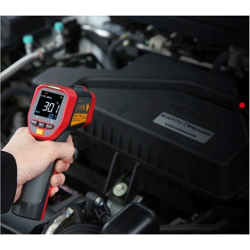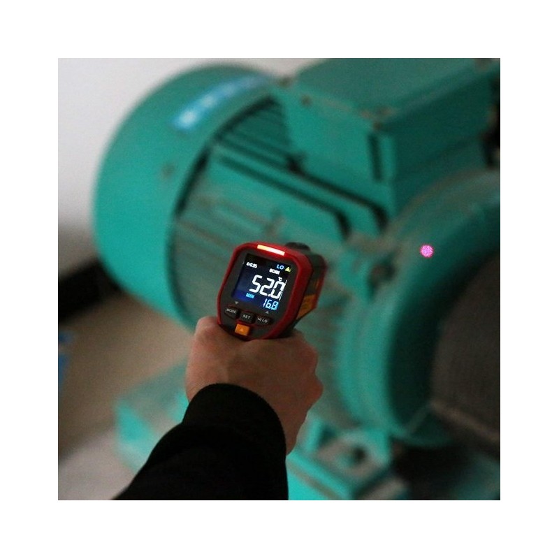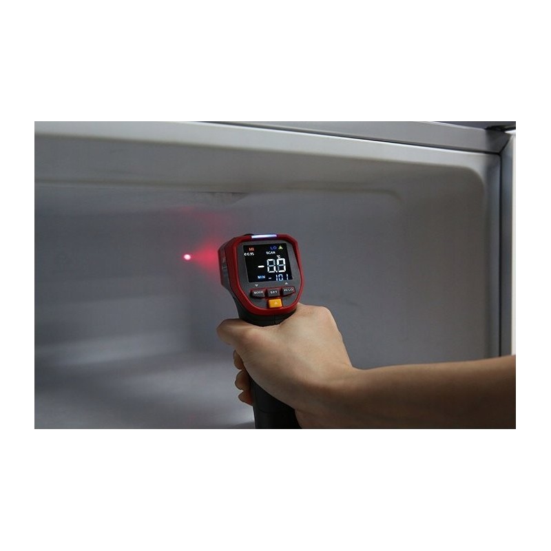 TERMOMETR UNI-T UT301C+ miernik ten to świetne rozwiązanie dla osób, które potrzebują bezkontaktowego pomiaru temperatury. Miernik ma podświetlany wyświetlacz, który umożliwia pracę przy słabym oświetleniu. Podczas pomiaru laserowy wskaźnik pokazuje dokładny punkt, w którym mierzona jest temperatura. Ten pirometr pozwoli na dokładne i szybkie pomiary bez konieczności dotykania mierzonej powierzchni, co jest bezpieczne i higieniczne.