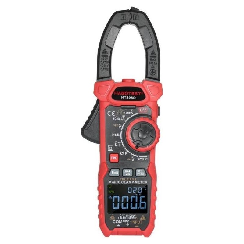HT208D to praktyczne urządzenie, za pomocą którego możesz sprawdzić wartość różnych parametrów, na przykład, napięcie oraz natężenie AC i DC, opór, temperaturę, prąd rozruchowy i wiele innych. Produkt zapewnia precyzyjny pomiar, którego wyniki są następnie wyświetlane na ekranie LCD. HT208D posiada też latarkę, która umożliwia wygodną pracę w ciemnych pomieszczeniach. Cyfrowy miernik cęgowy wykorzystasz w wielu sytuacjach. Za jego pomocą sprawdzisz wartość napięcia AC, oporu, pojemności, temperatury, częstotliwości, NCV, itp. Możesz też skontrolować ciągłość i prawdziwą wartość RMS.