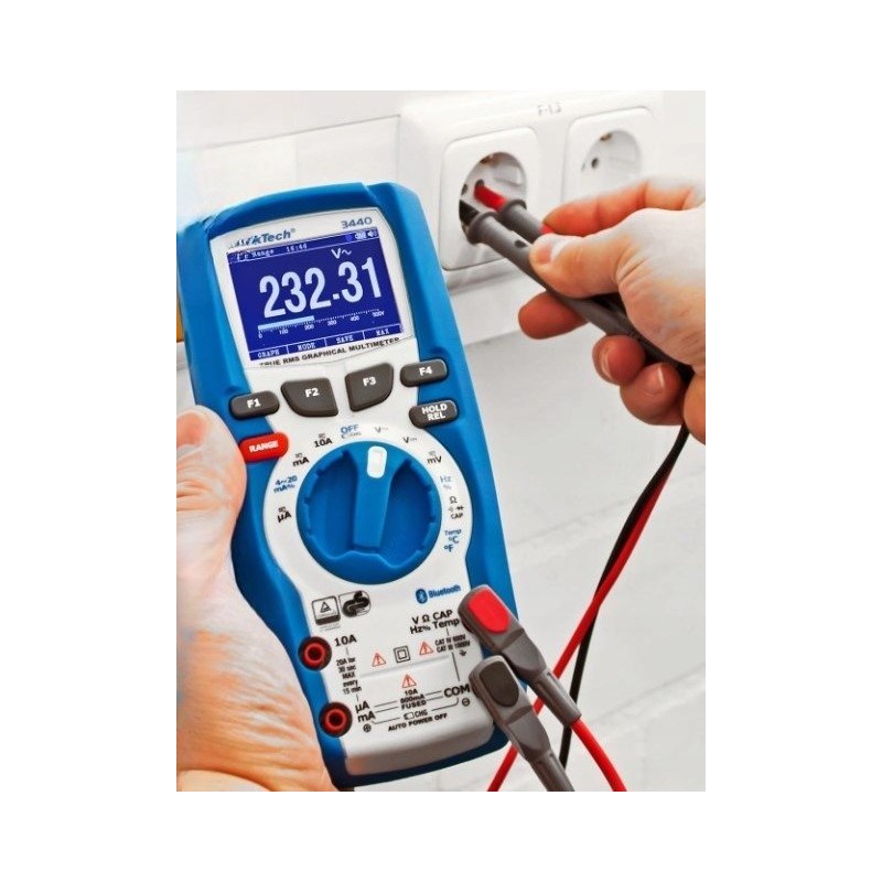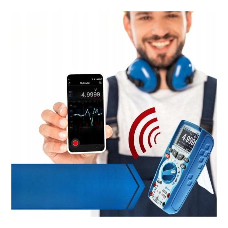 Dzięki technologii Bluetooth 4.0, multimetr PeakTech P 3440 umożliwia bezprzewodowy transfer danych do aplikacji na smartfonie. Użytkownicy mogą łatwo zapisywać i analizować dane pomiarowe, co zwiększa funkcjonalność urządzenia.
