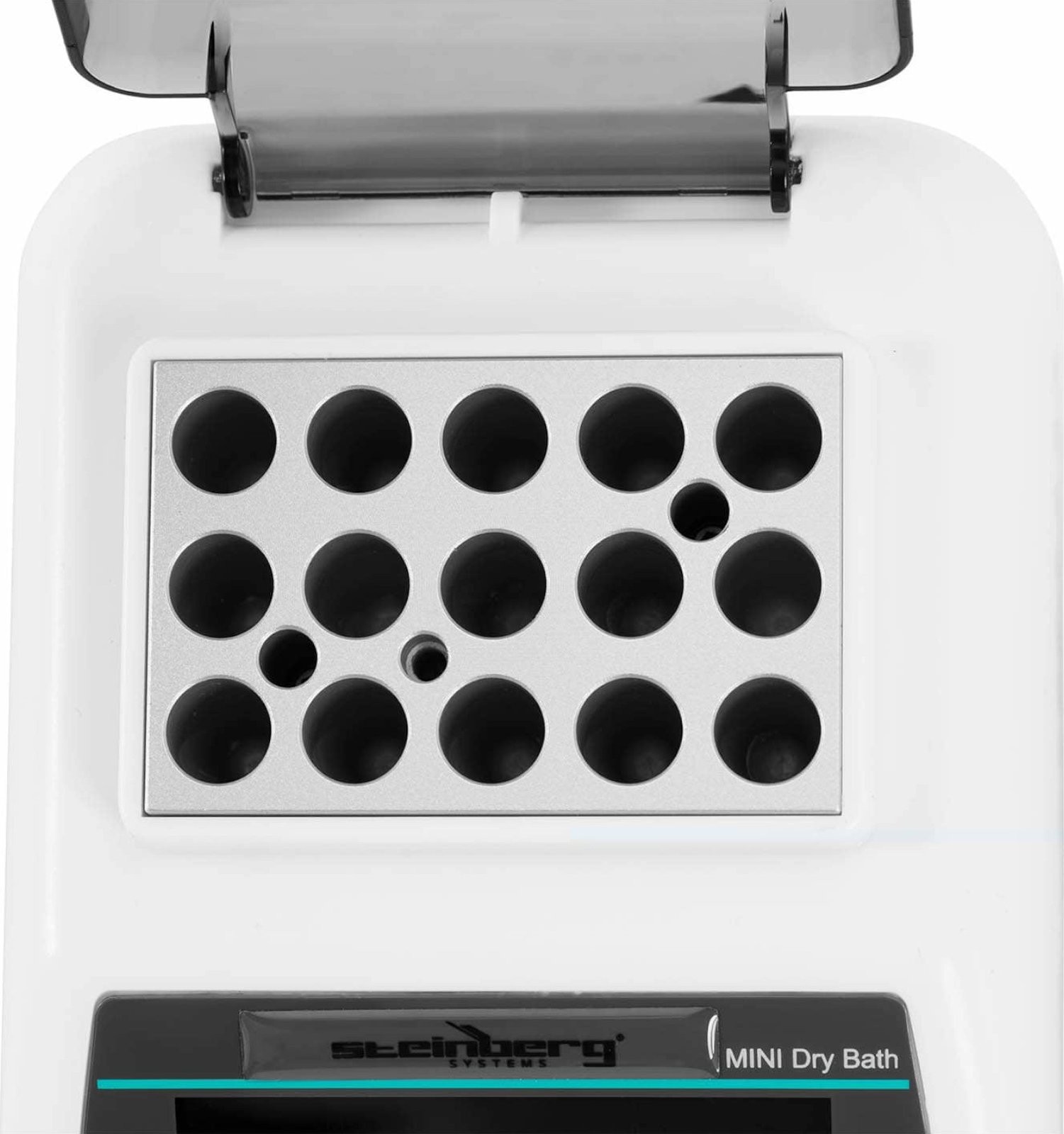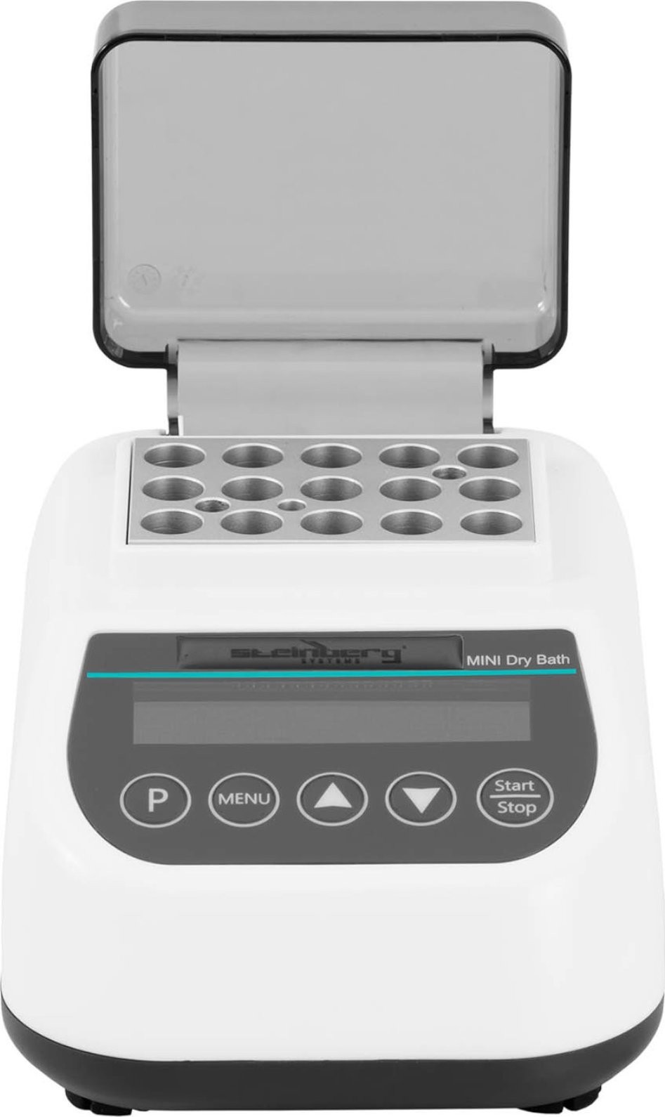 Łaźnia sucha marki Steinberg Systems umożliwia jednolitą, precyzyjną i powtarzalną kontrolę temperatury bez użycia wody lub pary. Jest idealna do różnego rodzaju eksperymentów i działań, takich jak czyszczenie, suszenie i przygotowanie próbek, amplifikacja DNA lub polimeryzacja tworzyw sztucznych. Przy mocy 60 W urządzenie pracuje oszczędnie i zapewnia temperaturę, którą można ustawić za pomocą wyświetlacza LED z rozdzielczością 0,1 °C w zakresie od 15 do 100 °C i z dokładnością 0,5 °C. Nagrzewa się w czasie 12 min, równomiernie rozkładając ciepło. Za pomocą intuicyjnego wyświetlacza można zapisać tryby pracy, ustawić sekwencję programów lub skorzystać z timera w zakresie od 1 s do 23 godz. 59 min. Łaźnia oferuje wszechstronne zastosowanie dzięki zintegrowanej funkcji chłodzenia. Wymienne wkładki umożliwiają pracę z szeroką gamą naczyń na próbki o różnych rozmiarach. Kompaktowe rozmiary urządzenia nie zajmują wiele miejsca, ponadto jest prosty w transporcie.