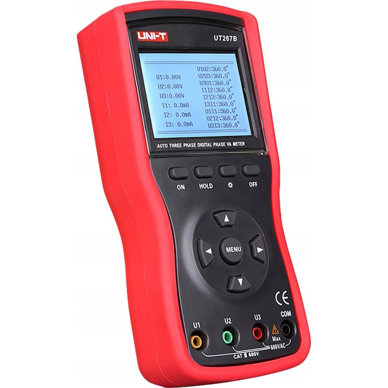 UT267B to ekonomiczny miernik 3-fazowy. Urządzenie jest w stanie jednocześnie pomiaru parametrów elektrycznych i wyświetlać wyniki na ekranie LCD. Miernik może być używany do monitorowania elektrycznej skrzynki rozdzielczej, odpowiedni dla elektryków, konserwacji elektrycznej, napraw i personelu szkoleniowego.