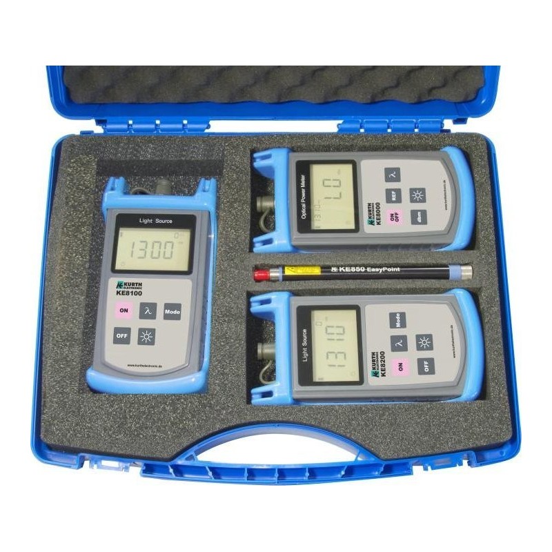 SpecyfikacjaKurth Electronic 0.49150-8 KURTH KE8083 to wielofunkcyjny zestaw pomiarowy przeznaczony do pomiarów w trybie jedno- i wielomodeowym. Zestaw zawiera miernik poziomu KE8000 oraz źródła światła KE8100 MM, KE8200 SM i KE850 w wytrzymałej obudowie, która jest odporna na wstrząsy. W komplecie znajdują się również baterie oraz instrukcja obsługi.