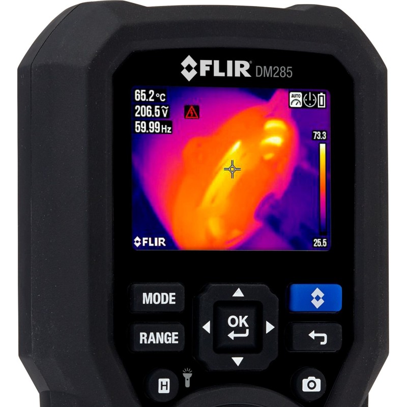 Multimetr termowizyjny z funkcją IGM FLIR 160x120px do 150stC z elastycznymi cęgami pomiarowymi i akumulatorem Li-Poly Kod produktu: DM285-FK Termowizyjny multimetr cyfrowy FLIR DM285 to profesjonalny, zintegrowany cyfrowy miernik uniwersalny z pomiarem rzeczywistej wartości skutecznej i modułem termowizyjnym, który umożliwia lokalizację problemów elektrycznych, co przyspiesza ich rozwiązywanie. Dzięki zastosowaniu modułu termowizyjnego o rozdzielczości 160x120 i technologii pomiaru wspomaganego podczerwienią (IGM), DM285 umożliwia wizualną lokalizację problemu elektrycznego, co przyspiesza pracę i zwiększa jej wydajność. Dzięki funkcji IGM można z bezpiecznej odległości sprawdzać tablice rozdzielcze, złącza i przewody bez konieczności bezpośredniego kontaktu. Po zidentyfikowaniu problemu za pomocą IGM, DM285 umożliwia sprawdzenie i potwierdzenie wyników przy pomocy zaawansowanych funkcji pomiaru kontaktowego, które umożliwiają rozwiązywanie nawet najbardziej złożonych problemów elektrycznych. Urządzenie sprawdzi się idealnie w zastosowaniach takich jak montaż i serwis urządzeń elektronicznych, instalacje elektryczne w budynkach użytkowych, mniejsze instalacje przemysłowe, serwis w terenie oraz serwisowanie instalacji ogrzewania, wentylacji i klimatyzacji. W DM285 zastosowano unikalny interfejs Bluetooth®, który umożliwia bezprzewodową transmisję danych poprzez połączenie z aplikacją FLIR Tools Mobile™ na kompatybilnych urządzeniach mobilnych. DM285 jest również kompatybilny z nowym narzędziem do zarządzania przepływem pracy FLIR InSite™, umożliwiającym przygotowanie optymalnych tras przeglądów, dokładnej dokumentacji, udostępnianie informacji klientom i tworzenie raportów natychmiastowych. Zestaw FLIR DM285-FK zawiera elastyczne cęgi pomiarowe FLIR TA74, które ułatwiają pracę i rozszerzają możliwości posiadanego multimetra. Wąski, 18-calowy, długi, elastyczny zacisk cewki i mechanizm blokujący umożliwiają wykonywanie pomiarów w ciasnych lub niewygodnych miejscach – są więc idealne do pomiarów wieloprzewodowych, wymagających podwójnego owinięcia i głębszego dostępu. Połączenie to standardowy wtyk bananowy, a wyjście to wskaźnik napięcia, więc są kompatybilne z większością multimetrów cyfrowych i mierników cęgowych, niezależnie od marki. Załączony akumulator Li-Poly FLIR TA04 wydłuża czas pracy urządzenia do 12 godzin. W zestawie znajduje się ładowarka sieciowa z przejściówkami EU, UK, US, AU oraz CN. Szybkie i bezpieczne wykrywanie usterek Obrazowanie termiczne umożliwia szybkie skanowanie w poszukiwaniu przegrzanych elementów i wykorzystanie funkcji testowania DMM do diagnozowania awarii.