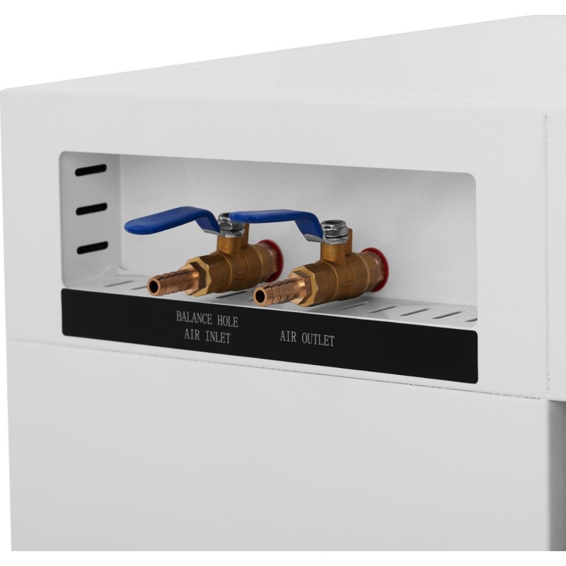 Suszarka próżniowa marki Steinberg Systems to profesjonalne urządzenie do suszenia, dezynfekcji, sterylizacji przedmiotów i narzędzi w laboratorium naukowym, biochemicznym lub medycznym. Moc suszarki wynosi 800 W. Duża pojemność 25 l umożliwia suszenie kilku przedmiotów jednocześnie. Temperaturę regulować można w zakresie do 250°C. Obudowa wykonana została ze stali oraz tworzywa ABS a okno ze szkła hartowanego. Cyfrowy panel LED pozwala łatwo odczytać ustawione wartości. Urządzenie posiada klasę ochrony EN1 i wytwarza ciśnienie maksymalne 133 Pa.
