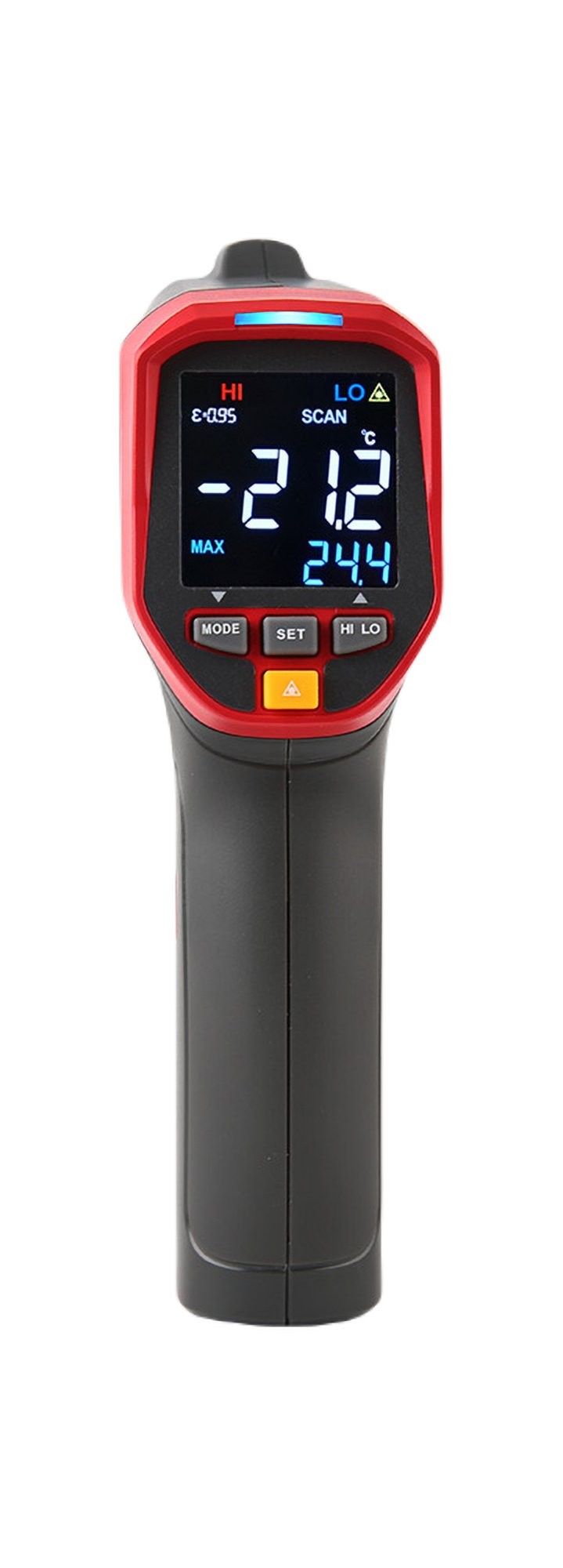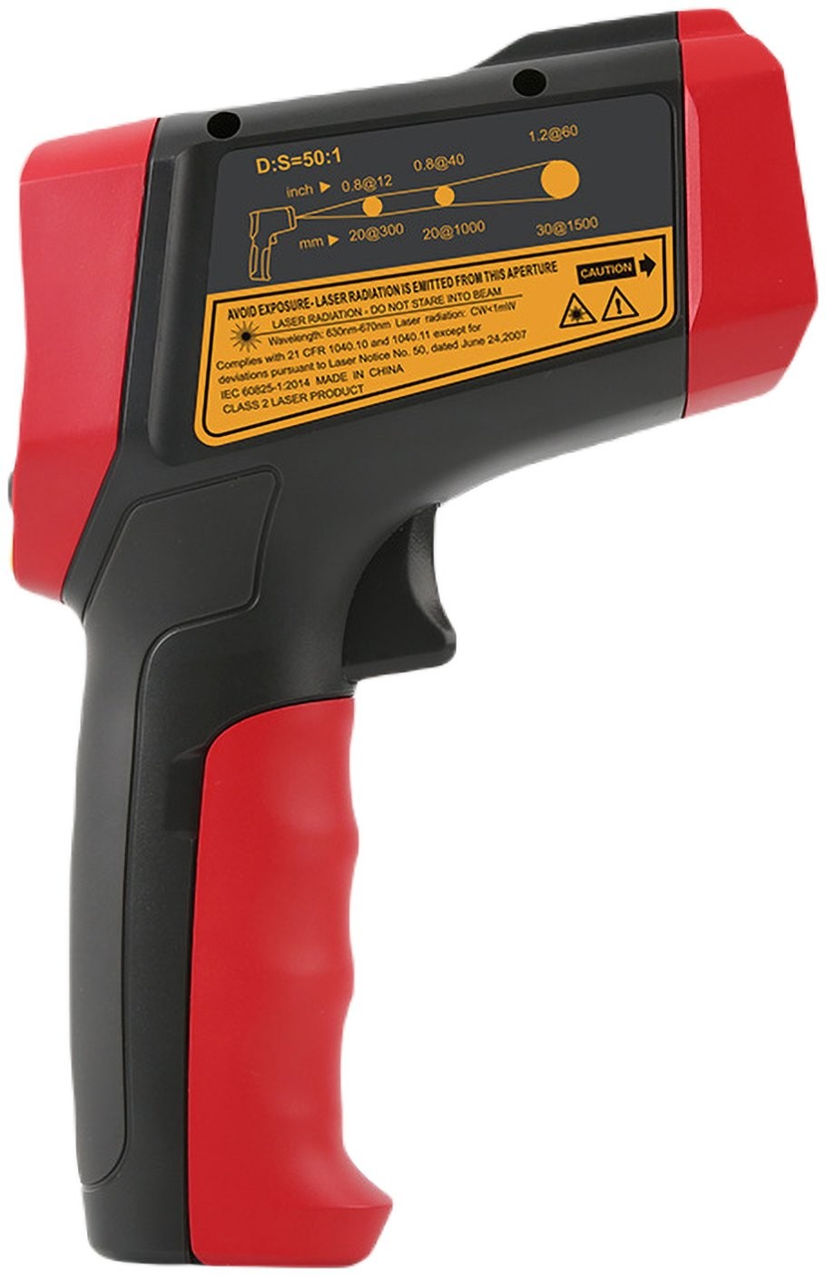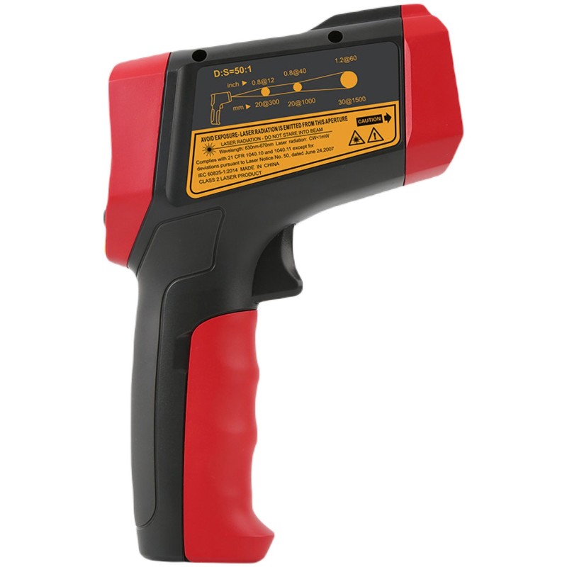 -----------POMIAR TEMPERATURY-----------Zakres: -50°C ~ 2000°C (-58°F ~ 3632°F)Rozdzielczość: 0,1°CDokładność: +/-1°C (lub ?1%)Powtarzalność: 0,7°C (lub 0,7%)Czas reakcji: <= 250 msWrażliwość widmowa: 8 ?m ~ 14 ?mStosunek D:S: 50:1Emisyjność: 0,1 ~ 1,0Typ lasera: klasa 2Moc lasera: <1 mWFala lasera: 630 nm ~ 670 nm-----------DODATKOWE FUNKCJE-----------Alarm przekroczenia limitu (dźwiękowy i kolor podświetlenia)Wybór jednostek: °C/°F Wskaźnik niskiego poziomu bateriiPodświetlenie ekranu-----------CECHY OGÓLNE-----------Ty ekranu: EBTN (35 x 35 mm)Zasilanie: bateria 9 V (6F22) (brak w zestawie)Temperatura i wilgotność pracy: 0°C ~ 50°C (32°F ~ 122°F); <90% RHTemperatura i wilgotność przechowywania: -20°C ~ 60°C (-4°F ~ 140°F); <85% RHWymiary produktu: 172 x 113,5 x 53 mmWaga produktu (bez baterii): 310 g