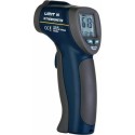 Profesjonalny bezkontaktowy termometr na podczerwień o ergonomicznej konstrukcji, który mierzy z wysoką dokładnością i szybkim odczytem temperaturę powierzchniową do 800°C. Wiarygodny wynik pomiaru dzięki dwóm punktom laserowym, które wyznaczają zewnętrzne krawędzie pola pomiarowego. Stosunek odległości pomiarowej do średnicy pola pomiarowego 10:1. Przełączana wartość współczynnika emisji. Rejestracja wartości maksymalnej i minimalnej. Funkcja alarmu przy ustawionych wcześniej wartościach. Funkcja pomiaru ciągłego bez naciskania spustu. Wyświetlacz LCD z dużymi cyframi głównymi 12 mm i z podświetleniem. Przełączanie jednostki miary pomiędzy °C lub °F. Odpowiedni do użytku w przemyśle spożywczym, do kontroli nieruchomości pod kątem bezpieczeństwa przeciwpożarowego, także przy formowaniu wtryskowym tworzyw sztucznych, asfaltowaniu, utrzymaniu ruchu w przemyśle itp. Bateria 9 V w załączeniu...