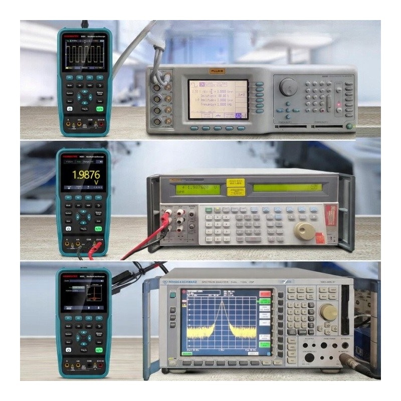 Funkcjonalność oscyloskopu, multimetru i generatora sygnału