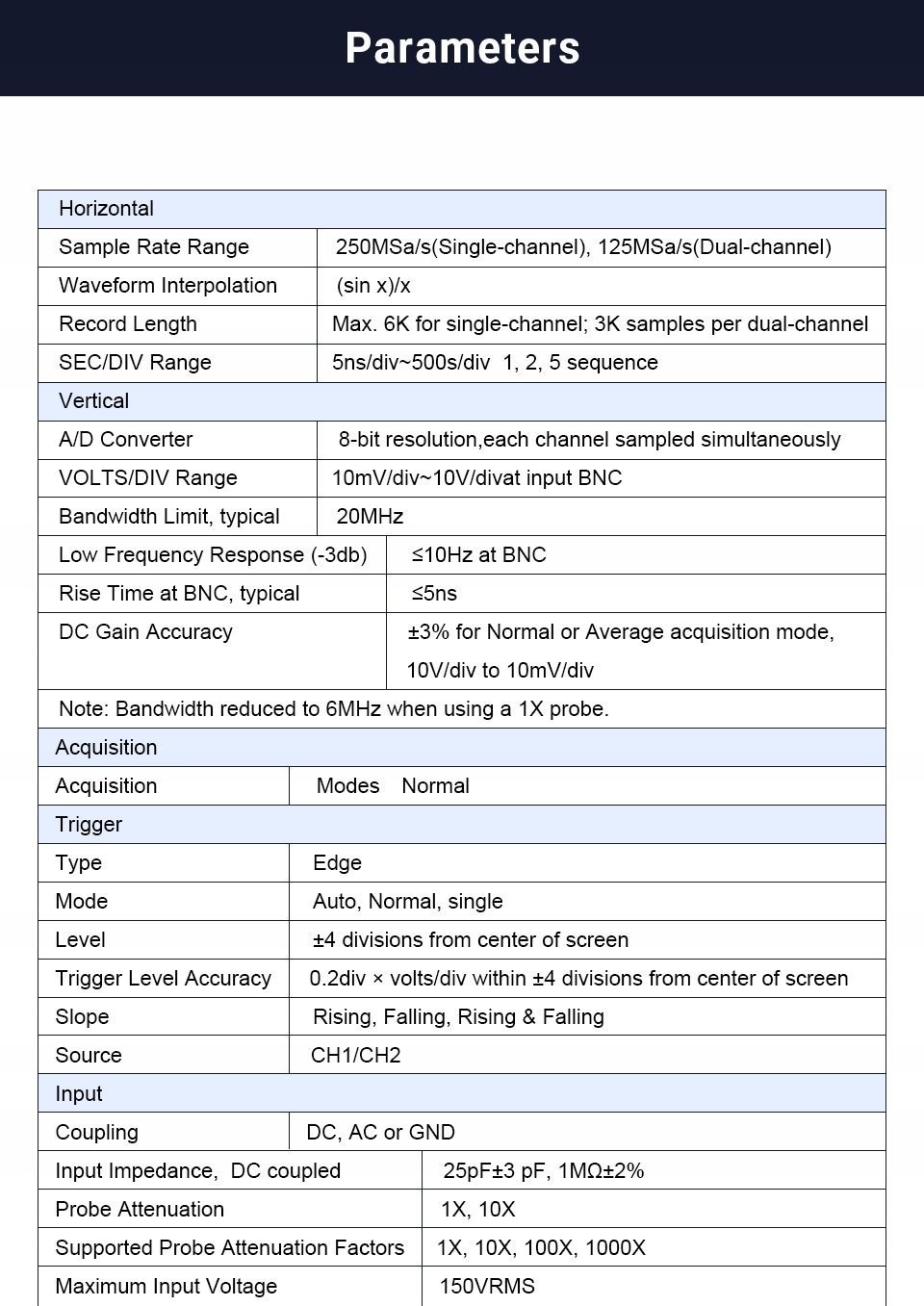 Specyfikacja techniczna Hantek 2C42 oscyloskopu cyfrowego