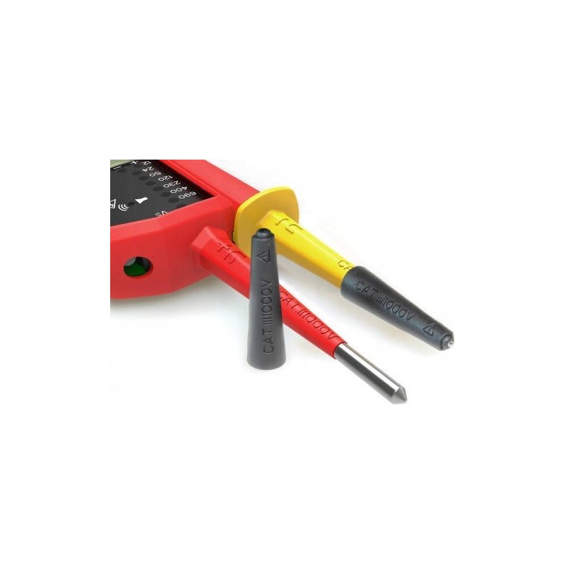 - Łatwiejsza praca - Szybkie, jednoręczne sprawdzanie na gniazdkach sieciowych przy odstępie stykowym 19 mm.