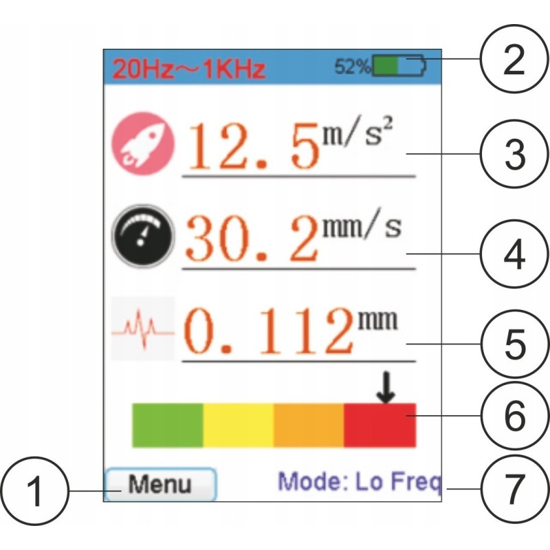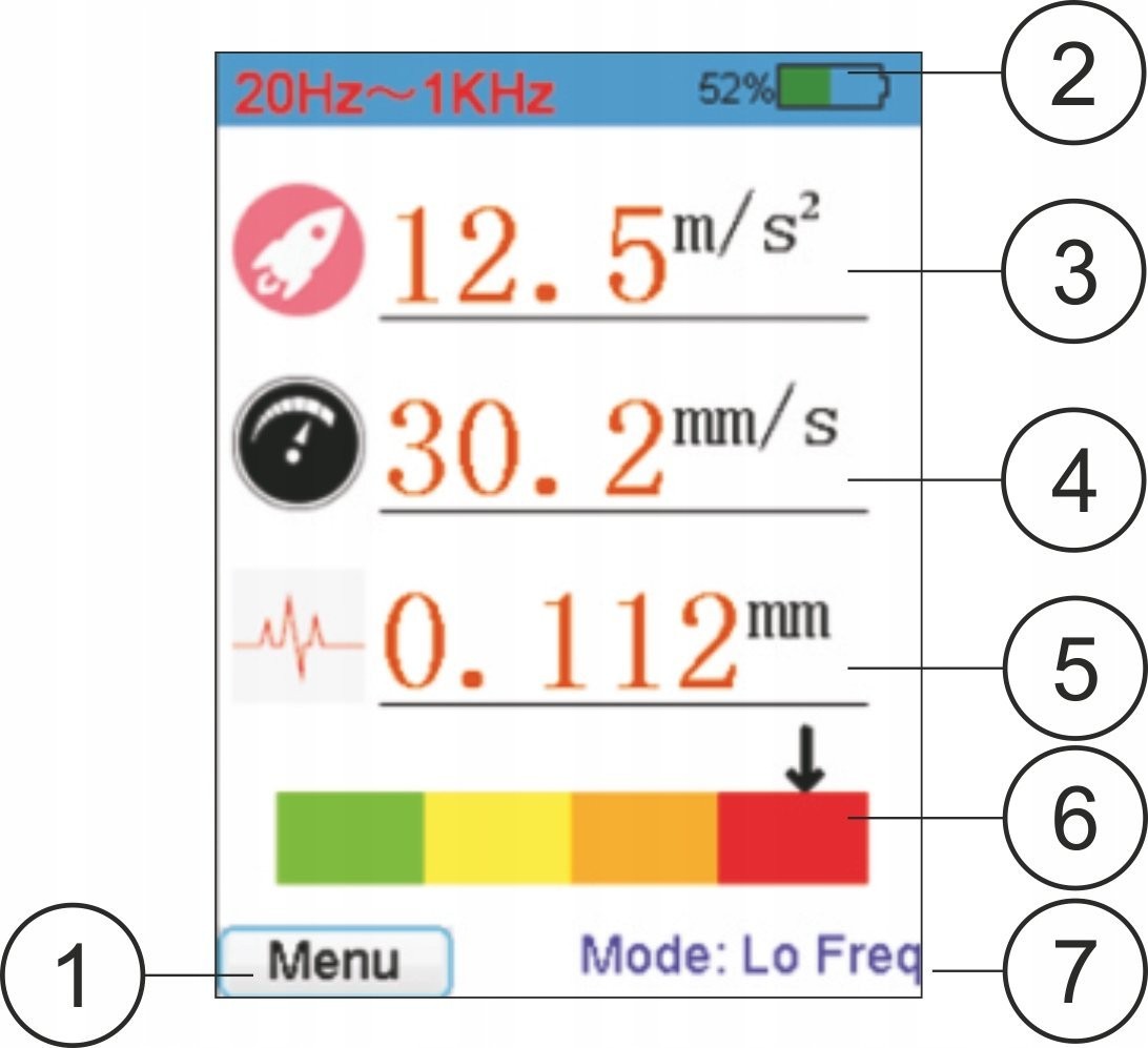 - Funkcje podstawowe Pomiar poziomu wibracji