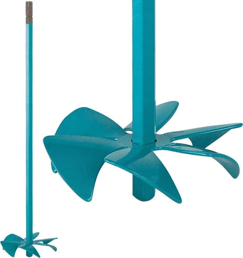 - Kierunek mieszania z góry w dół pozwala na wciągnięcie substancji do wiadra pod wodę, co eliminuje rozpylanie się i tworzenie się grudek
