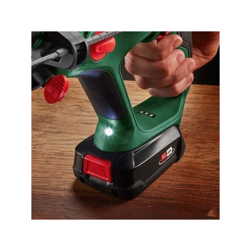 Młotowiertarka Bosch UniversalHammer 18V jest wyposażona w pneumatyczny mechanizm udarowy o energii 2 J, co umożliwia wiercenie w betonie do 16 mm oraz w drewnie do 25 mm. Dzięki temu narzędzie poradzi sobie w najtrudniejszych warunkach.