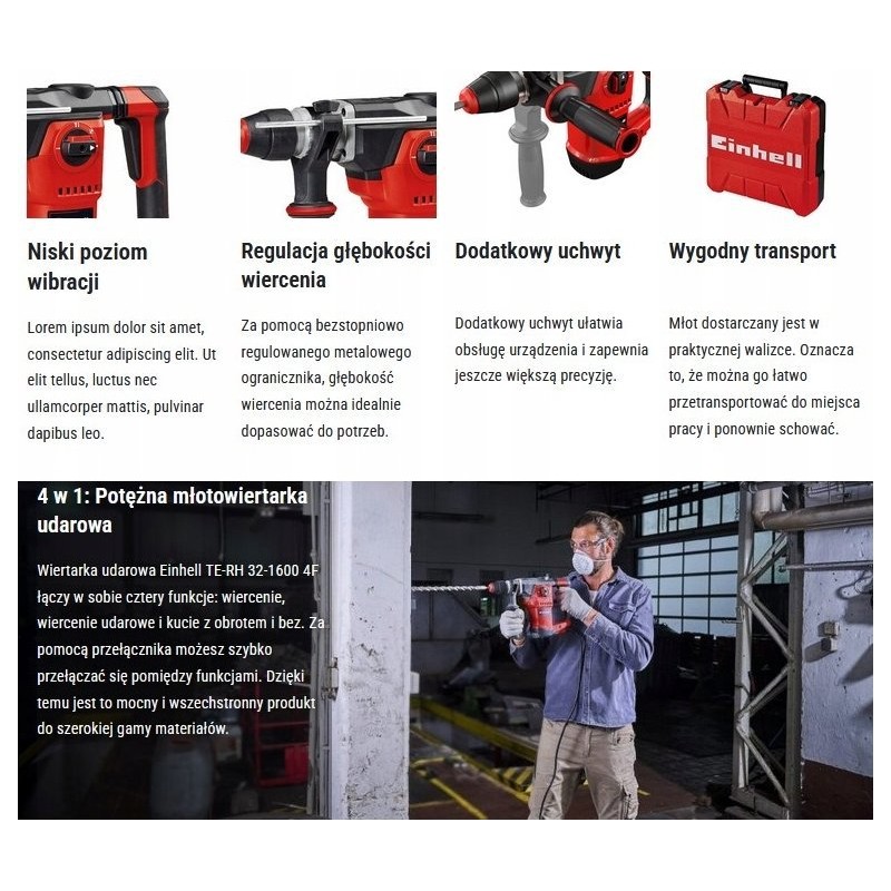 Specyfikacja techniczna Młotowiertarki Einhell TE-RH 32-1600 4F