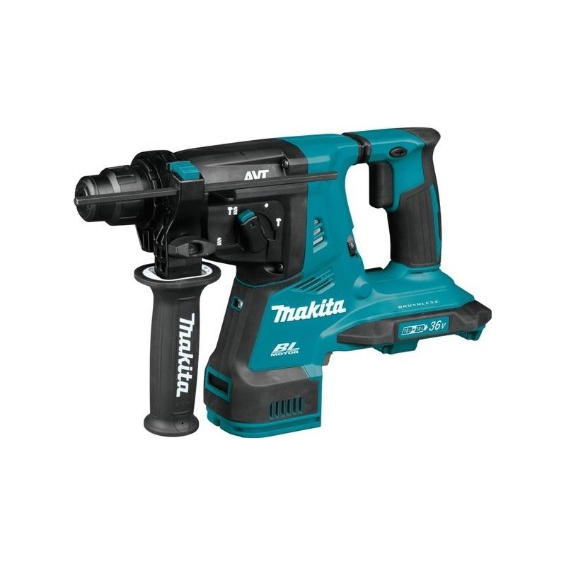 Akumulatorowy młot udarowo-obrotowy DHR282ZU Makita został zaprojektowany z myślą o efektywnym, bezpiecznym i wygodnym wykonywaniu prac związanych z wierceniem otworów i podkuwaniem. W związku z tym wyposażono go w technologię AWS, technologię AFT, technologię AVT, technologię XPT i system Soft No Load. Co więcej, młotowiertarka jest zasilana dwoma akumulatorami litowo-jonowymi 18V, które gwarantują długi i wydajny czas pracy. Ponadto model DHR283ZU posiada silnik bezszczotkowy o podwyższonej odporności na przeciążenia oraz płynną i elektroniczną regulację prędkości dla osiągnięcia optymalnych rezultatów pracy. Całość dopełniają dwie zintegrowane diody LED z funkcją opóźnionego wygaszania, pomocnicza rękojeść boczna i ogranicznik głębokości wiercenia.
