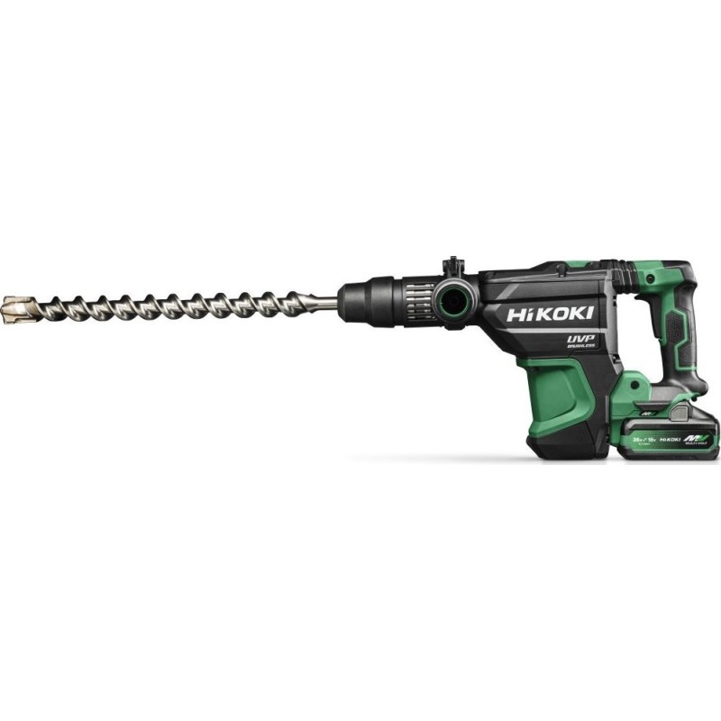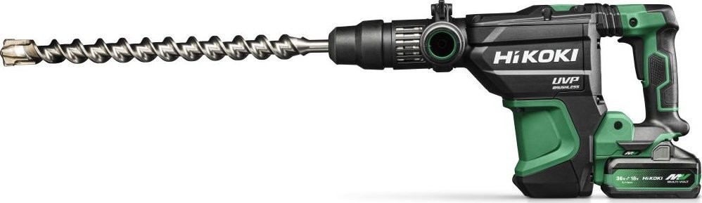 Hikoki DH3640DAWAZ. Rodzaj zacisku: SDS Max, Kolor produktu: Czarny, Zielony, Silnik: Bezszczotkowy. Energia uderzenia: 9,2 J, Częstotliwość uderzeń na biegu jałowym (min): 250 ud./min, Częstotliwość udaru (maks.): 500 ud./min. Źródło zasilania: Bateria, Technologia baterii: Litowo-jonowa (Li-Ion), Pojemność baterii: 4 Ah. Szerokość produktu: 262 mm, Głębokość produktu: 499 mm, Wysokość produktu: 107 mm. Liczba baterii włączone: 2 szt.