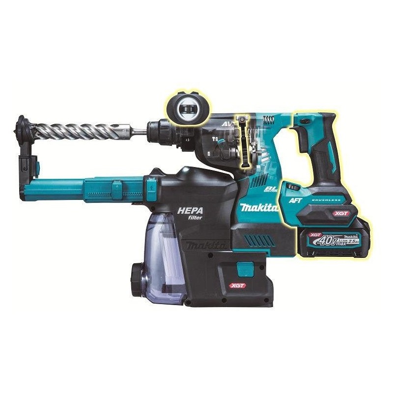 Wyposażona w akumulator 40V MAX, młotowiertarka Makita zapewnia znakomitą moc oraz mobilność, eliminując konieczność korzystania z kabli. Dzięki temu możesz pracować w dowolnym miejscu, bez ograniczeń związanych z dostępem do źródła zasilania.