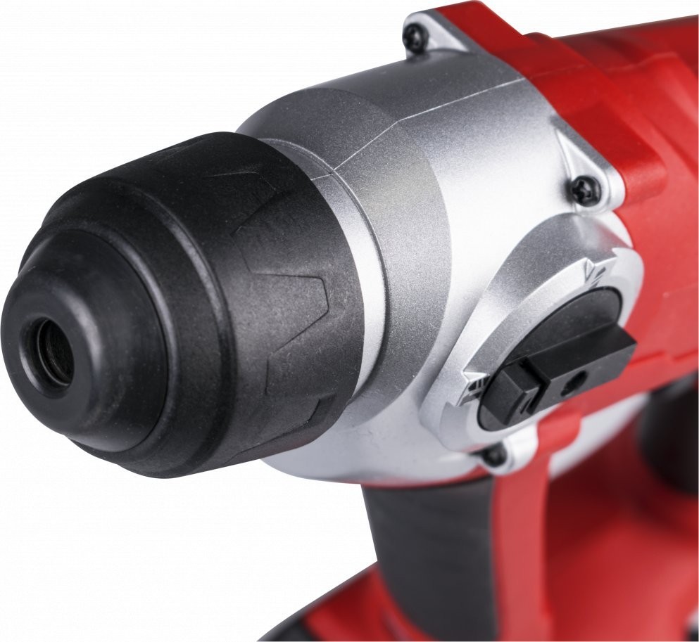 - Ergonomiczny przełącznik trybu pracy umożliwia wygodną i szybką zmianę trybu z wiercenia udarowego na wiercenie bez udaru
