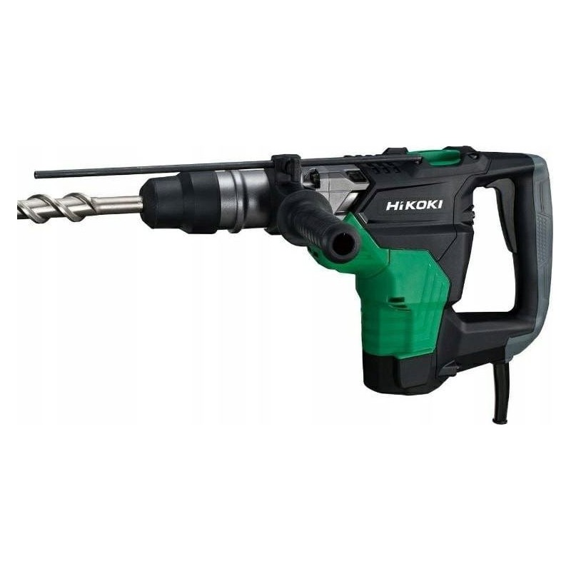 Sieciowa młotowiertarka DH40MC WSZ HiKOKI to ulepszona forma tradycyjnej konstrukcji z silnikiem szczotkowym. Proste i sprawdzone rozwiązania i technologie doprowadzono do szczytu możliwości, co zaowocowało większą wydajnością w stosunku do wcześniejszych modeli. Również poziom wibracji został znacząco zredukowany, a rękojeść pokrywa żywica poliamidowa zabezpieczająca przed poślizgiem. Duży przełącznik trybów pracy i dobrej jakości uchwyt SDS-MAX gwarantuje sprawne przejście z wiercenia do kłucia. Duży włącznik zmniejsza odczuwanie zmęczenia w czasie długotrwałej pracy. Kompletacja zawiera dodatkową rękojeść boczną, smar do konserwacji uchwytu i walizkę transportową mieszczącą cały set. Młotowiertarka dedykowana jest fachowcom wiercącym otwory w twardych betonach do maksymalnej średnicy 40mm lub do wykonywania otworów widiowymi koronkami o maksymalnej średnicy 105mm. Funkcja kłucia pozwala na prace rozbiórkowe i precyzyjne wykuwanie bruzd w najtwardszych betonach.