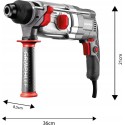 Wyposażona jest w wytrzymały przewód o długości 3 m, który nadaje się zarówno do zastosowań profesjonalnych, jak i przemysłowych. Młotowiertarka jest dostarczana w zestawie z dodatkowym wiertłem, uchwytem wiertarskim, adapterem do uchwytu oraz praktyczną, wielofunkcyjną walizką. Posiada certyfikat CE, co oznacza zgodność z europejskimi standardami.