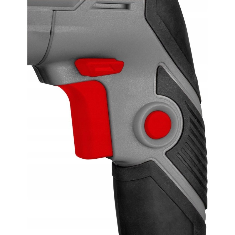 Młotowiertarka posiada wygodną funkcję zmiany kierunku obrotu wrzeciona bez utraty mocy podczas lewych obrotów oraz blokadę włącznika do ciągłej pracy. Maksymalna częstotliwość udaru przy nominalnej prędkości wynosi 5500 uderzeń na minutę, a maksymalna liczba obrotów podczas wiercenia to 1350 min⁻¹.
