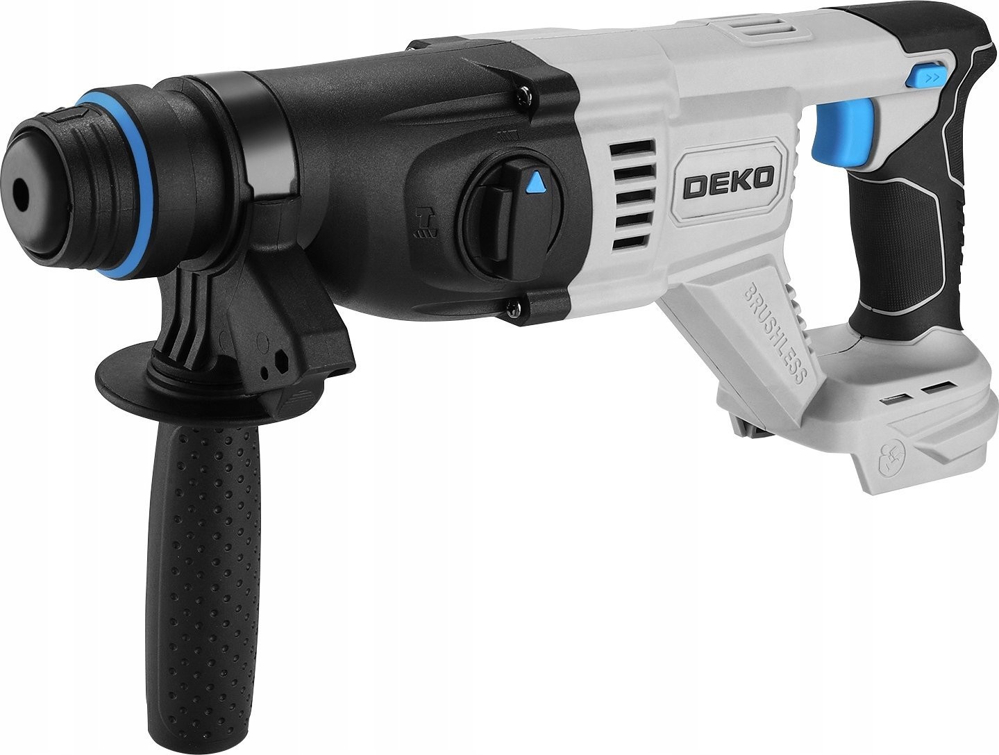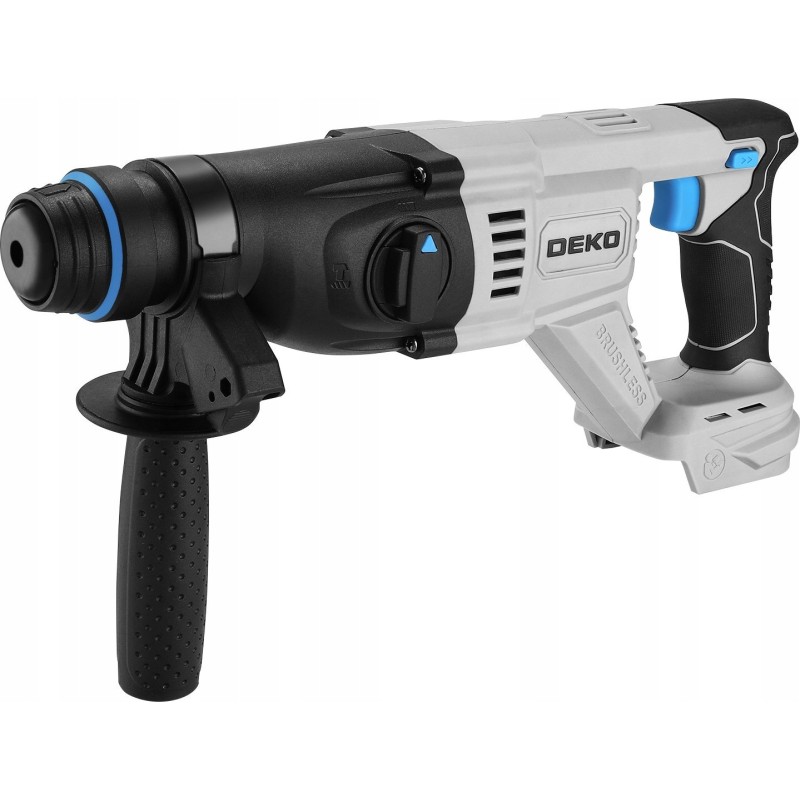 Dzięki zastosowaniu silnika bezszczotkowego, młotowiertarka DEKO jest nie tylko bardziej wydajna, ale także przyjazna dla środowiska. Oszczędność energii oraz mniejsze nagrzewanie się urządzenia to dodatkowe atuty, które przekładają się na dłuższą żywotność narzędzia.