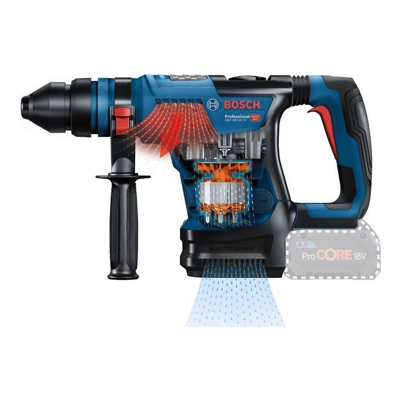 Najwyższa wydajność dzięki sile udaru 5,8 J – najwydajniejsza młotowiertarka SDS Plus w swojej klasie, przeznaczona do trudnych prac w betonie
