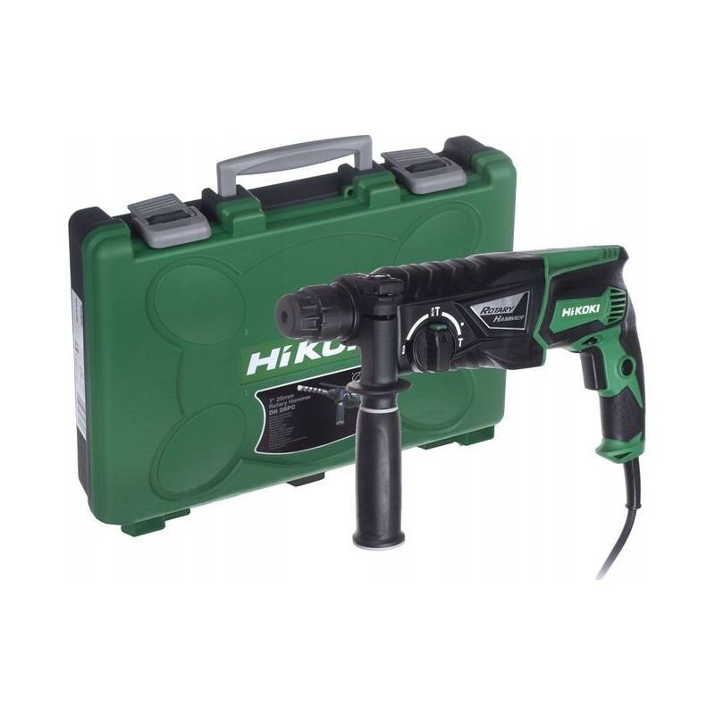 Młotowiertarka HiKOKI DH26PCWSZ to profesjonalne elektronarzędzie przeznaczone do wiercenia bez udaru, wiercenia z udarem i podkuwania. Sprzęt posiada uchwyt SDS-Plus oraz funkcję zmiany kierunku obrotów prawo/lewo. Elektronarzędzie wyposażono w sprzęgło bezpieczeństwa oraz elektroniczne podtrzymanie prędkości obrotowej. Młot sprawdzi się w pracach remotnowo-budowlanych, przy codziennej eksploatacji. Model DH26PC to popularne elektronarzędzie, chętnie wybierane przez fachowców. Cechuje się trwałą konstrukcją, która sprawdzi się w trudnych warunkach budowlanych.