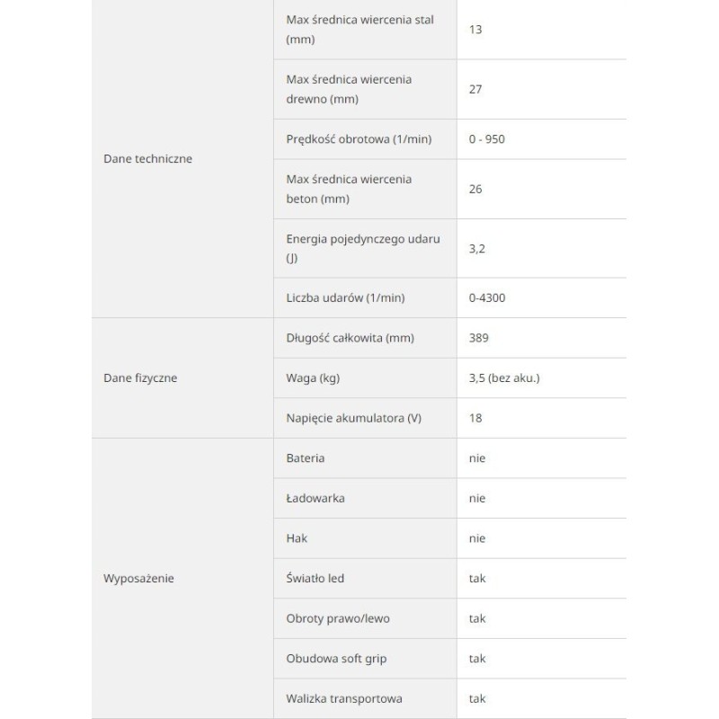 Wersja nie zawiera akumulatora, ładowarki i walizki transportowej.