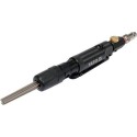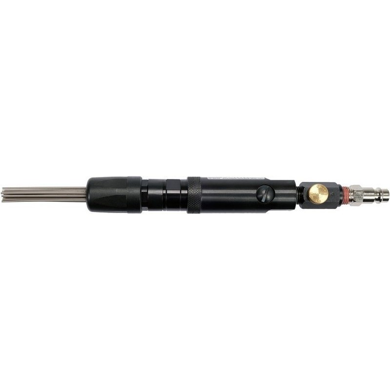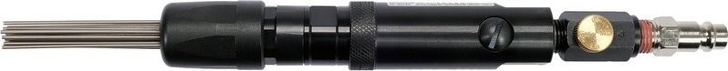 Mini młotek igłowy przeznaczony do czyszczenia rdzy, spawów i prac blacharskich. Kompaktowe rozmiary pozwalają na precyzyjną pracę w załomach. Zawór regulacyjny pozwala na dostosowanie częstotliwości uderzeń. Możliwość ustawienia kierunku wylotu powietrza zwiększa komfort pracy użytkownika.