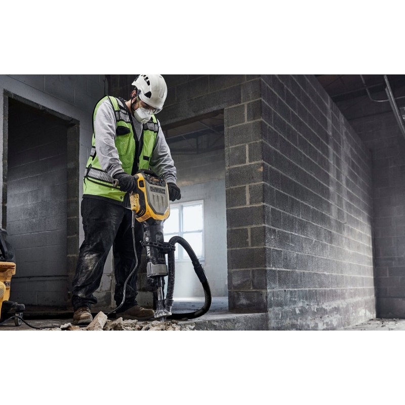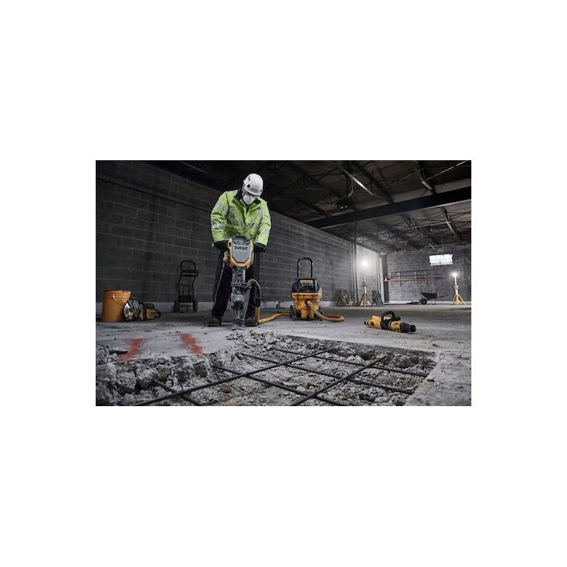 Młot D25966 wyróżnia się ergonomiczną konstrukcją uchwytu, co zapewnia lepszą widoczność dłuta oraz ułatwia obsługę. Dodatkowo, jego mniejsza waga sprawia, że narzędzie jest łatwiejsze w manewrowaniu, co jest kluczowe podczas intensywnych prac wyburzeniowych.