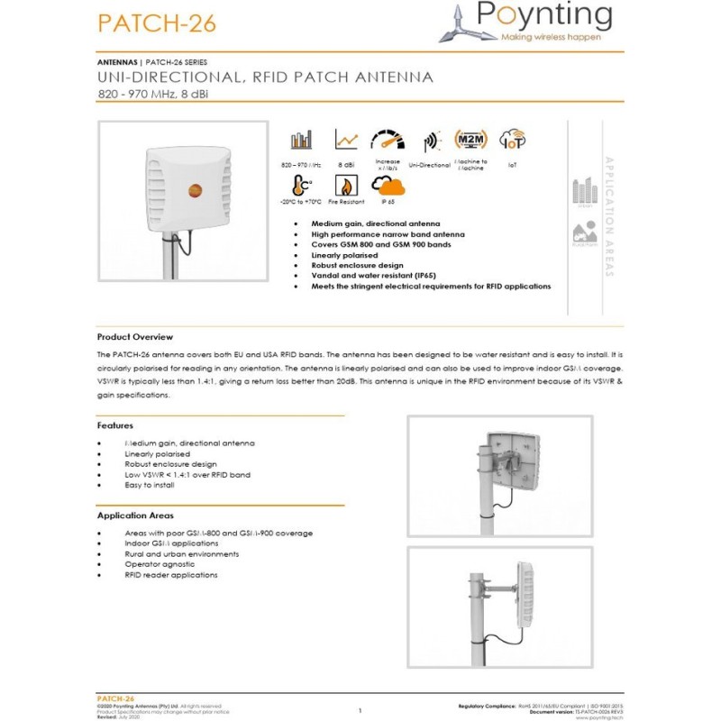 Antena kierunkowa Poynting PATCH-26 to nowoczesne rozwiązanie stworzone z myślą o pasmach RFID. Dzięki imponującemu zyskowi na poziomie 8 dBi, jest ona doskonałym wyborem do zastosowań w obszarach z ograniczonym zasięgiem GSM-800 oraz GSM-900, co sprawia, że świetnie sprawdzi się zarówno w instalacjach wewnętrznych, jak i zewnętrznych.