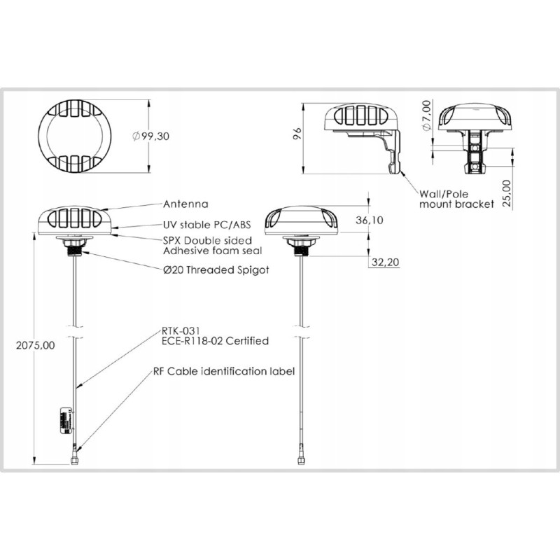 Antena ta charakteryzuje się klasą ochrony IP68, co oznacza, że jest odporna na wodę, kurz oraz korozję. Wykonana z materiałów odpornych na promieniowanie UV oraz ogień, zapewnia długotrwałe użytkowanie nawet w trudnych warunkach atmosferycznych.