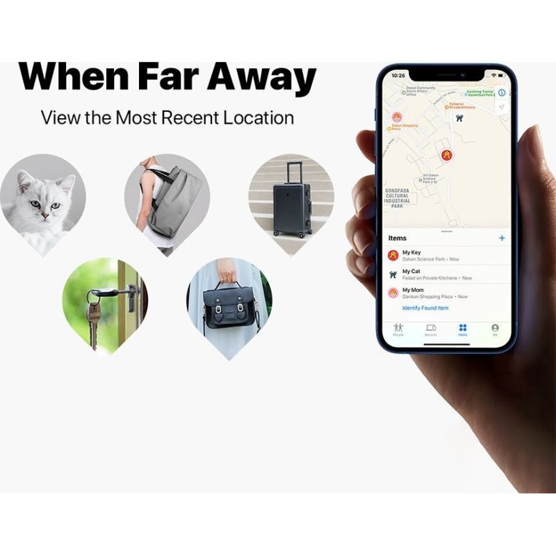 Wraz z aplikacją Apple „Find My#8221; MiTag staje się doskonałym narzędziem do śledzenia Twoich rzeczy. Możesz łatwo zobaczyć lokalizację zaznaczonych elementów na przejrzystej mapie. A gdy znajdą się w promieniu do 120 m (w zależności od konkretnych warunków), w poszukiwaniach pomoże Ci głośny sygnał dźwiękowy, który można zdalnie uruchomić na lokalizatorze za pomocą systemowej aplikacji Find My / „Znajdź#8221; . Jeśli natomiast będzie poza zasięgiem Bluetooth, Twój MiTag będzie nadal możliwy do odnalezienia dzięki setkom milionów urządzeń Apple anonimowo podłączonych do sieci. Cała komunikacja jest szyfrowana, z pełnym poszanowaniem prywatności.