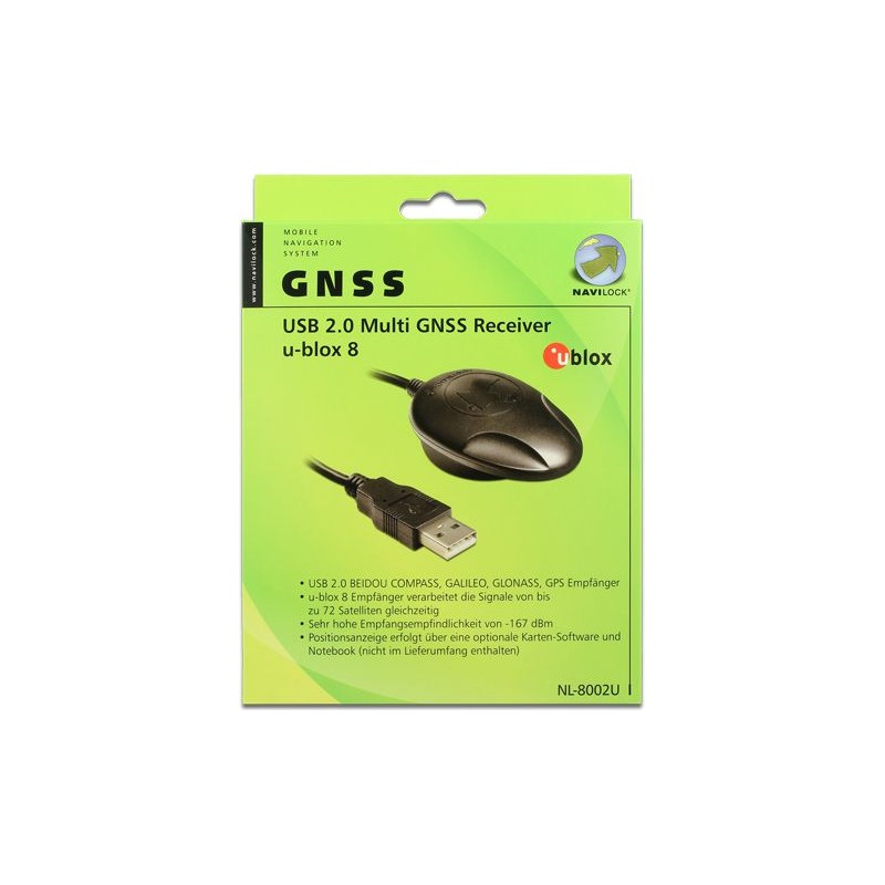 Odbiornik Multi GNSS bazowany na u-blox 8 wyposażony w antenę o wysokiej czułości. Posiada on kabel ze złączem USB 2.0 dzięki czemu możesz używać odbiornika z laptopem we współpracy z jakimś programem nawigującym.