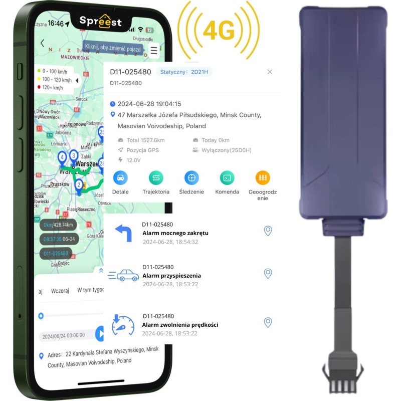 Moduł GPS Spreest LOKALIZATOR GPS 4G DO POJAZDÓW SAMOCHODU AUTA TRACKER BEZ ABONAMENTU SOS